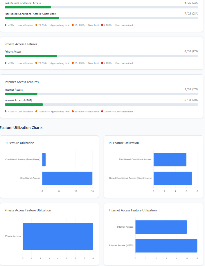 - Feature adoption tracking: Measure rollout success of features like risk-based CA or Private Access after enablement campaigns