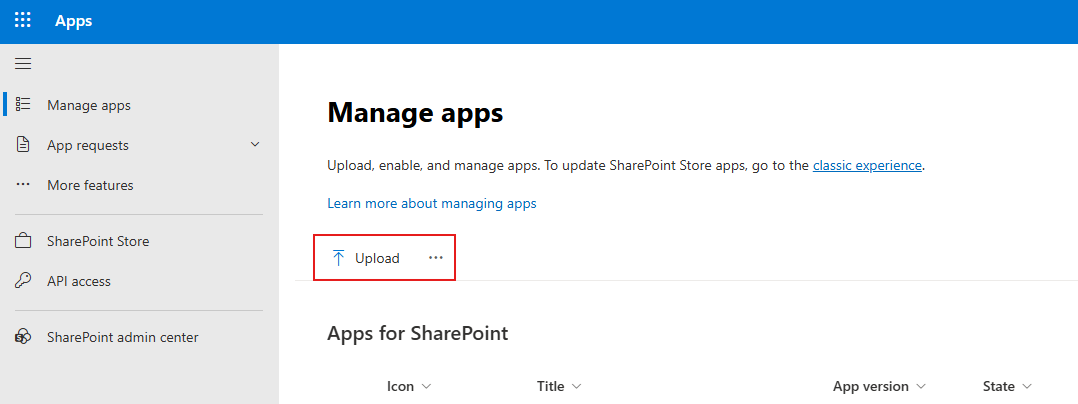 Go to the SharePoint Admin Center → More features → Apps → Open